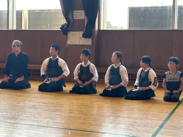 今日は防具組と基本組に分かれて、暑い中、稽古を頑張りました。また、見学の小学2年生と3年生が来て、少し体験の稽古を行いました。新座剣友会ではいつでも体験を受け付けていますので、自由に見学に来て下さい。